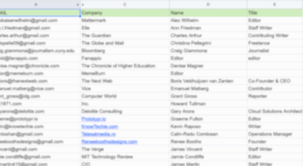 1400+ emails of tech journalists